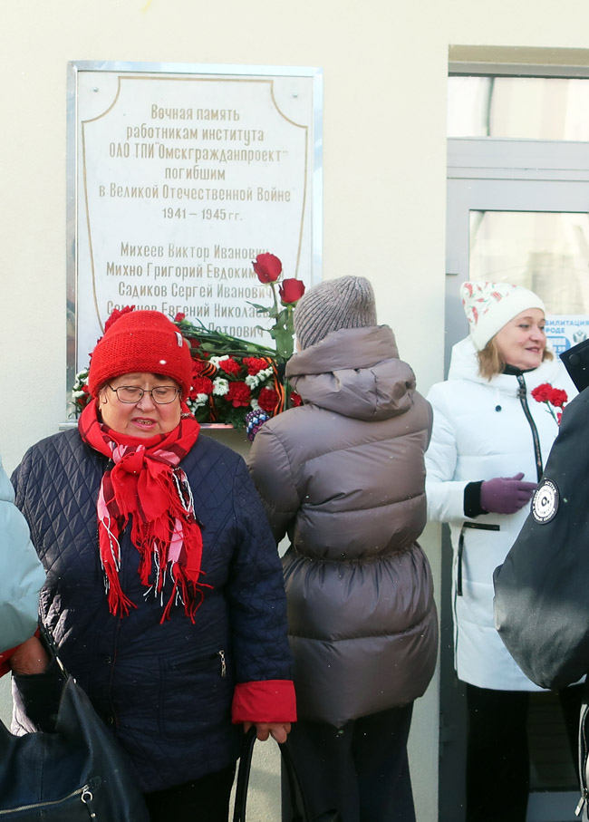 В праздник 4 ноября 2025 года возле здания бывшего института «Омскгражданпроект» по улице Петра Некрасова, 3 состоялось неприметное для публики, но значимое для участников событие: первое возложение к мемориальной доске погибшим в Великой Отечественной войне.