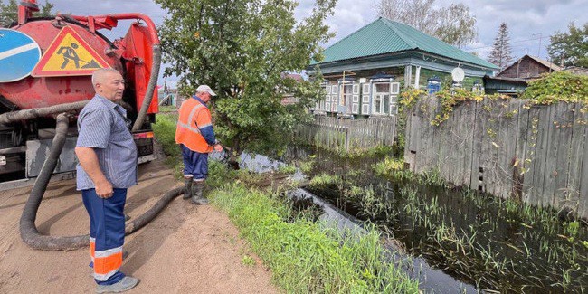 В райцентре Таврическое остался подтопленным один частный дом, но работы по водоотведению, по данным МЧС, не прекращаются.