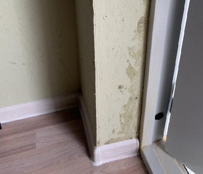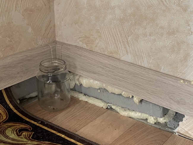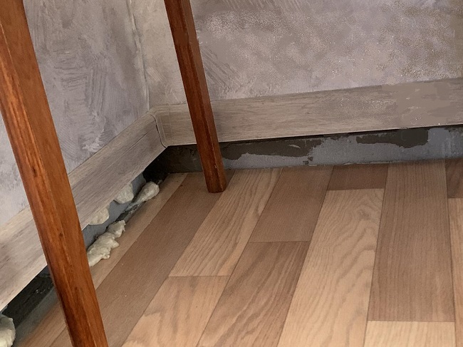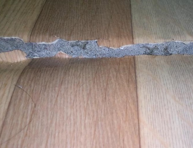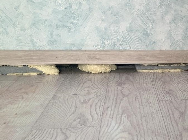 При проверке в помещениях первого этажа выявлена просадка пола от 3 до 6 см. На пол опирались стены. В связи с потерей опоры между просевшим полом и стенами образовались огромные зазоры, плинтус повис на стенах.