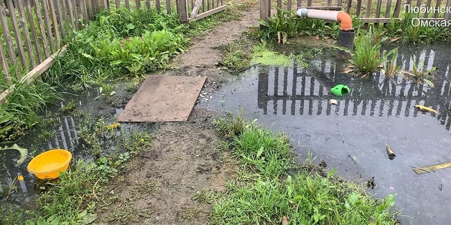 В жилье отсутствуют подвалы и подполы, пол цементный просто утонул в рыхлом грунтовом основании. Дом построен в низине, ливнем затапливаются не только окружающие территории, но и подъезды (заглавное фото). В безопасном использовании данных помещений (при взгляде на фото) возникают серьезные сомнения..