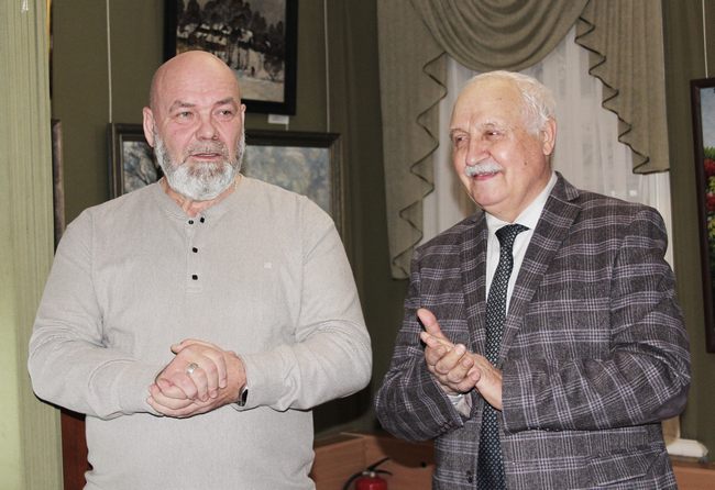 – У нас здесь 24 работы, – рассказывает директор музея Владимир БЕЛОВ. – Когда мы привезли их и заносили, сотрудники сказали, что столько тут не поместится. Наш музей камерный, а работы очень большие. Но Иван Васильевич пришел с рулеткой, сделал замеры, и вот пожалуйста – всё поместилось.