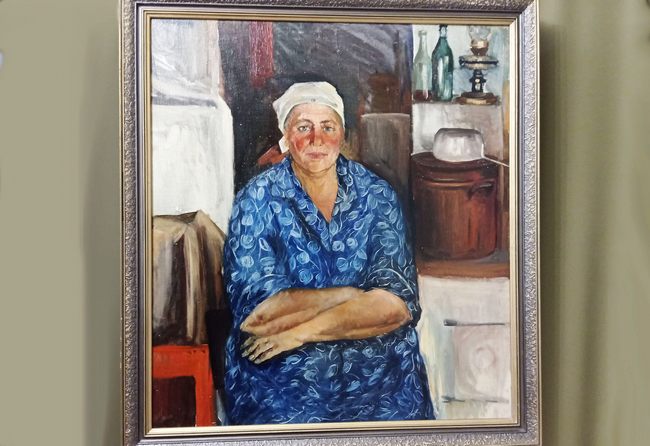 – Это моя родная тетя, сестра моего отца, – рассказывает Иван Васильевич. – Когда я учился на четвертом курсе Дальневосточного института искусств, у нас была самостоятельная практика, я приехал домой и вот написал серию портретов: ветерана Великой Отечественной войны, отца, тети Тани. Для меня это люди очень значимые. Тетя Таня всю жизнь проработала в колхозе, в свекловичной бригаде, она выращивала сахарную свеклу. Работа в сельском хозяйстве достаточно тяжелая, как говорится, от зари до зари. А у тети Тани было еще двое детей, которых она воспитывала одна. То есть дома опять работа: надо либо стирать, либо готовить. И только в редкие минуты можно было вот так посидеть, отдохнуть, подумать о чем-то.