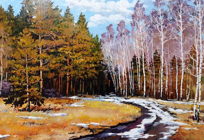 Пейзажи отличает сдержанность сюжетов и скромная цветовая гамма, характерная для сибирской природы.