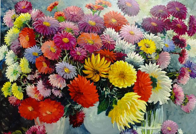 На выставке «Энергия красочных созвучий» (0+), приуроченной к 75-летию художника, представлены работы разных лет: пейзажи, натюрморты, портреты, композиции.