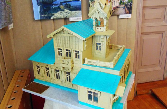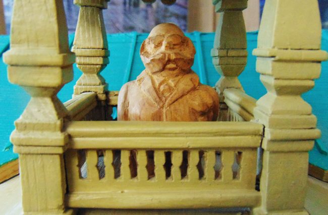 Интересный экспонат – макет дома-музея, где на балкончике мезонина мы видим бюст самого Кондратия Петровича БЕЛОВА. Это дипломная работа выпускницы Омского педуниверситета по специальности «Черчение и труд» Т.В. ОПЛЕТАЕВОЙ (1997). Увы, об авторе ничего не известно.
