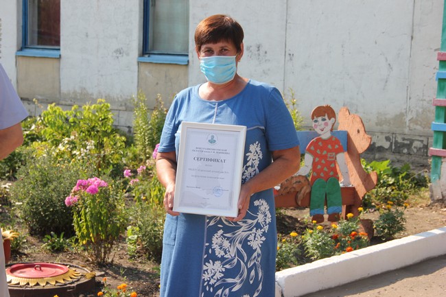 В завершение поездки представители Фонда встретились с заведующей Саргатского детского сада №3 Ольга ШАБАНОВОЙ. Учреждению также был вручён подарочный сертификат. Садик посещают до 140 юных саргатчан.