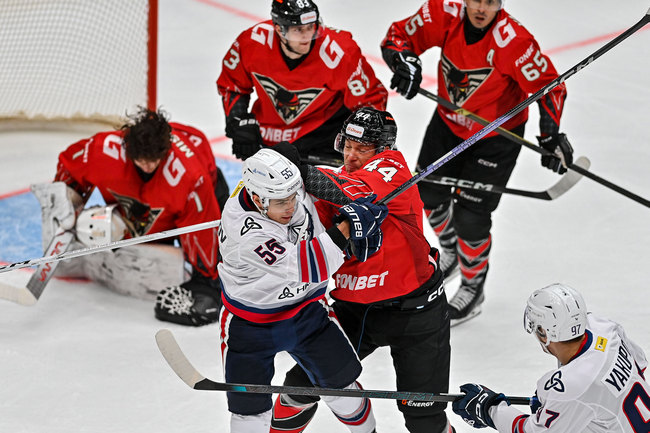 Вечером «ястребы» (в этом матче на защиту ворот Ги БУШЕ выставил Андрея МИШУРОВА) обыграли «Нефтехимик» – 6:3 (2:1, 2:1, 2:1)