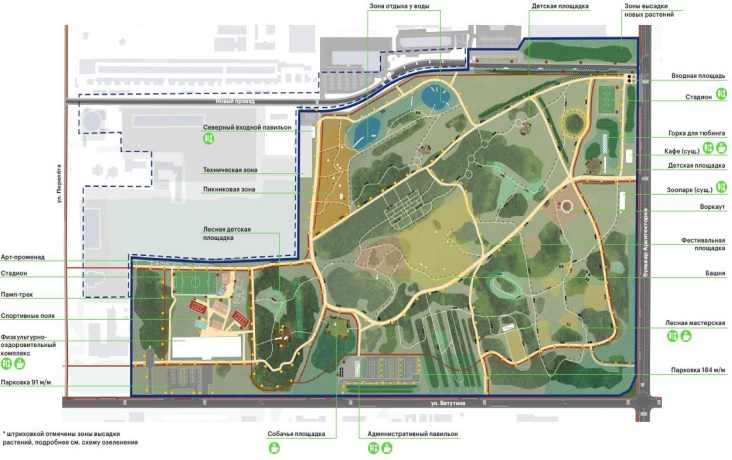 — Потенциал парка, конечно, гораздо выше, – заметила Мария СТУКОЛОВА и пояснила: – Администрацией города было инициировано создание проекта комплексного развития парка на принципах государственно-частного партнерства в 2022-2023 годах. ГК «Эталон» создала проект концепции благоустройства, которая предполагала организацию ландшафтного парка с минимальным воздействием на сложившийся лесной массив и с частичным обновлением ландшафта путем высадки растений. В составе парка предусмотрена организация общественного пространства для проведения общественных, культурных и спортивных мероприятий с размещением открытого кинотеатра, торговых палаток, двух детских площадок, стадиона, площадок воркаута, для выгула собак и вело-лыжного маршрута.