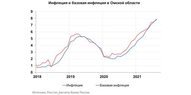 По данным Банка России, годовая инфляция в Омской области составила по итогам августа 7,8%. Это выше, чем в среднем по России (6,68%) и по Сибирскому федеральному округу (7,26%).
