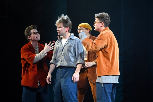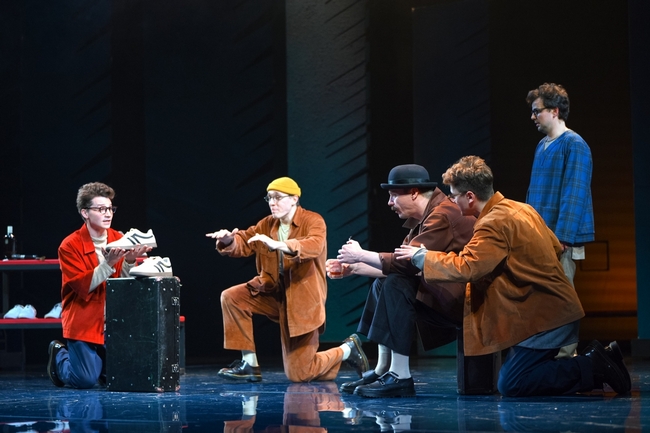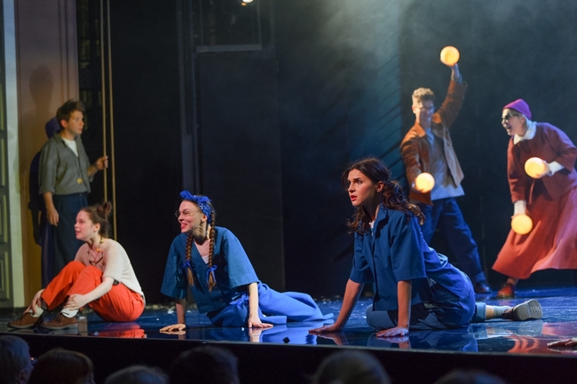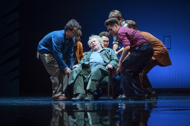 Дугласа играют сразу четыре актера: Игорь КОСТИН, Тимур МУЛЛИН, Максим САВЕНКО, Виталий ХРАМОВ. Потому что есть Дуглас, который вечно куда-то бежит, Дуглас, который считает облака, Дуглас, который ищет свое место и ждет чудес. Они скачут словно мячики, создавая пестрый вихрь. В спектакле существует мир взрослых и мир детей (Дуглас, его младший брат Том (Алексей КАЛМЫКОВ), девчонки-подружки). Но взрослые здесь не забыли, что были детьми – детство, юность живет внутри каждого из них, словно лебедь в проглотившем его драконе. А вот дети отказываются верить, что, например, пожилая миссис Бентли (Ирина ГЕРАСИМОВА) с ее чемоданами воспоминаний была когда-то такой же, как они. И только Дуглас понимает: ему тоже предстоит повзрослеть, состариться и… умереть.