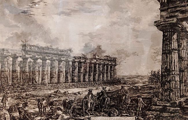 – На выставке присутствует 30 гравюр Пиранези из серии «Виды Рима», – рассказывает хранитель музейных предметов Государственного музея истории Санкт-Петербурга Ольга ЕГОРОВА. – Где-то больше Рима барочного, Рима XVIII века, где-то – античного. Есть так называемые архитектурные фантазии. Этих памятников не существует, их придумал Пиранези, когда приехал в Рим и в 1743 году сделал серию работ «Первая часть архитектуры и перспективы». Он везде с нею ходил, пытался доказать, что он потрясающий архитектор, получить заказы, это было его таким, как бы сейчас сказали, портфолио. К сожалению, у него ничего не вышло. Только ближе к концу жизни Пиранези удалось построить капеллу Мария дель Приората в Риме. Это была его единственная реальная постройка, все остальное время он гравировал. Его работы – это и «Виды Рима», и «Различные виды Пестума». Они оказались в собрании множеств библиотек, музеев, академий, где по ним учились архитекторы, в том числе и XX века. И, естественно, они напитывались какими-то визуальными впечатлениями.