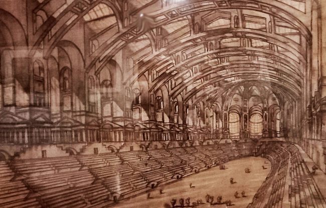 Экспозиция занимает два зала. В первом показаны офорты самого Джованни Баттисты Пиранези, во втором – советская архитектурная графика. Всего здесь около ста работ. Интересно выстроено само пространство: оно настолько архитектурно, что, кажется, мы блуждаем по закоулкам какого-то фантастического города.