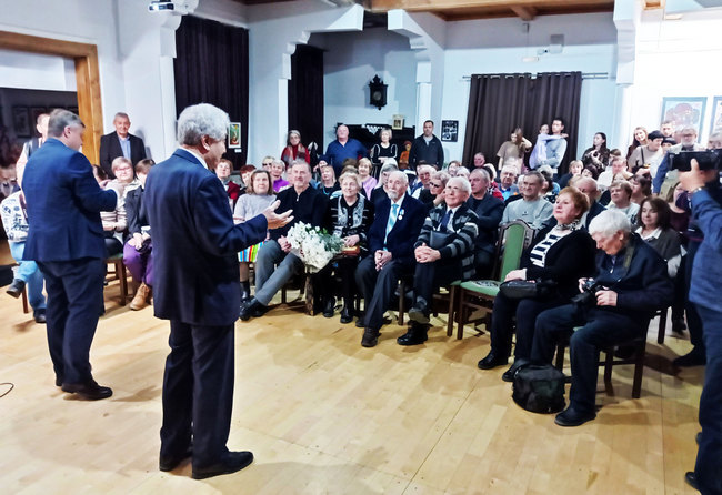 Юбиляра поздравили Владимир ШАЛАК, Анатолий ПЕТРОВ, а Владимир КУДРИНСКИЙ после добрых слов исполнил песню.
