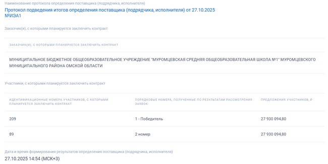 Облправительство выбрало подрядчика, который завершит не доделанный предыдущим недобросовестным подрядчиком капитальный ремонт средней школы №1 в рабочем посёлке Муромцево. Директор Муромцевской школы №1 Алексей ПЕЧЕНИН и директор ООО «Импульс» Владимир КИРАКОСЯН уже заключили контракт, предписывающий окончить ремонтные работы за полтора месяца – до 15 декабря 2025 года.