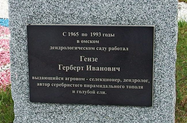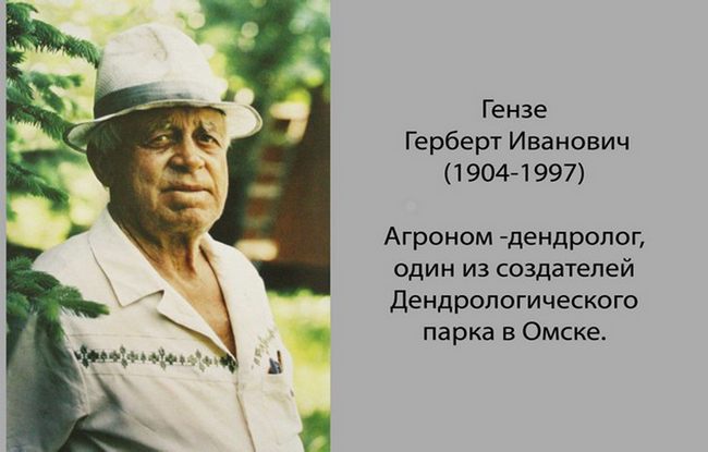 «Омский областной дендрологический сад был заложен в 1948 году. В начале 1960-х годов в Омск привели саженцы ёлок из европейской части страны. Однако ёлочки показали стали погибать. Они не выдержали наш суровый климат. Из сорока саженцев прижились только четыре. Дендролог Герберт Иванович ГЕНЗЕ начал вести селекционную работу с ёлочками. У него сорт ёлок получился устойчивый».