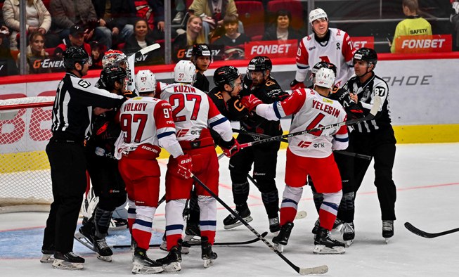 На 41-й минуте при игре в большинстве долгую осаду берлоги «бурых мишек» на левом пятаке завершил «ястреб» Николай ПРОХОРКИН технично усмирив отскочившую от штанги шайбу – 4:1.