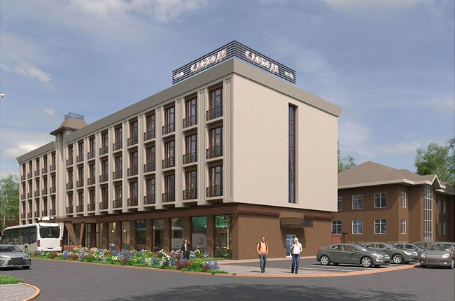 Под возведение попадают три земельных участка, на одном из которых размещен жилой дом, принадлежащий МАГАШЕВУ, а на другом ветхий, подлежащий сносу. За счет реконструкции коттеджа и пристройки к нему предполагается разместить гостиницу на 130 мест с классификацией 4 звезды. В подвале расположится спа, на первом этаже – конференц-зал, лобби-бар и кафе на 50 мест. Фасад реконструируемого здания оставлен в существующей пластике со стенами из лицевого красного кирпича, добавлен вертикальный витраж с декоративной башней.