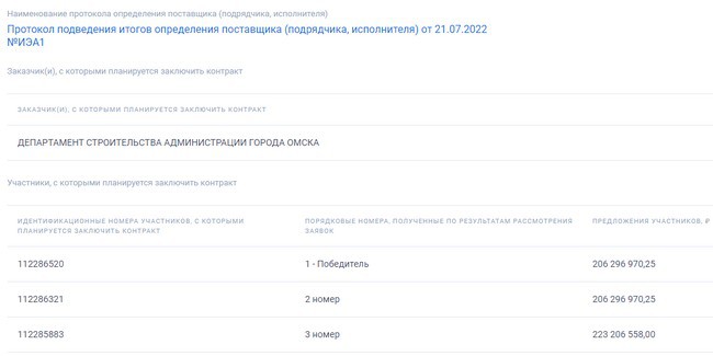 Если говорить точно, то победитель и «второй номер» указали в заявках суммы, совпадающие копейка в копейку, – 206 296 970 рублей 25 копеек. Какие предприятия были конкурентами победителей торгов, портал Госзакупок уже несколько месяцев как перестал указывать.
