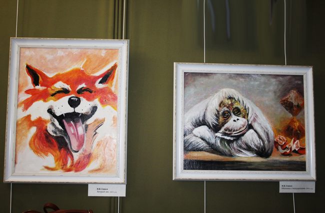 Совсем иные «портреты» у бухгалтера Натальи СОКОЛ: яркие живописные работы «Чеширский кот», «Обезьяна с мандарином», «Хитрый лис».