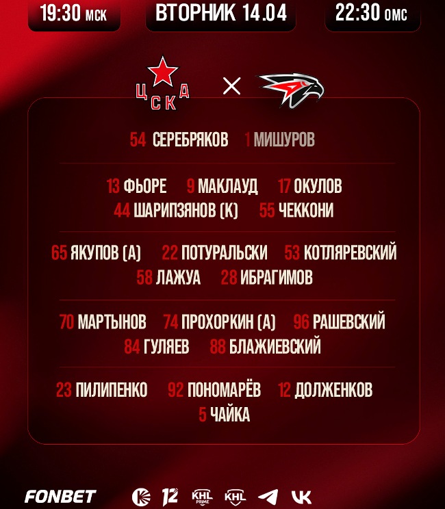 В Москве 14 апреля в четвёртом матче серии 1/4 финала Кубка Гагарина хоккеисты ЦСКА победили омский «Авангард» со счётом 3:1 (1:1, 1:0, 1:0).