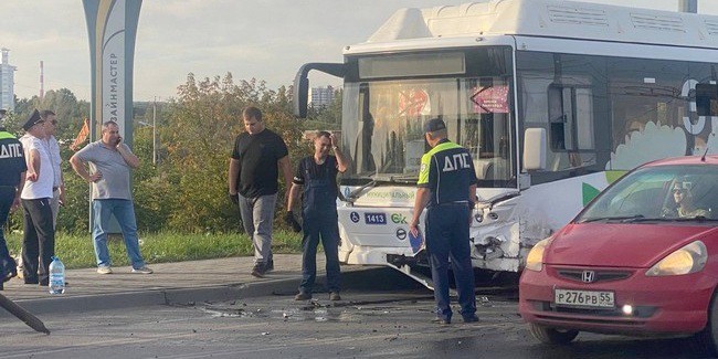 В омские экстренные службы 28 августа в 17:10 поступила информация о ДТП (на фото) в районе пересечения улиц Заречная и Крупской с участием трёх транспортных средств, в том числе автобуса, следовавшего по маршруту №109 с пассажирами.