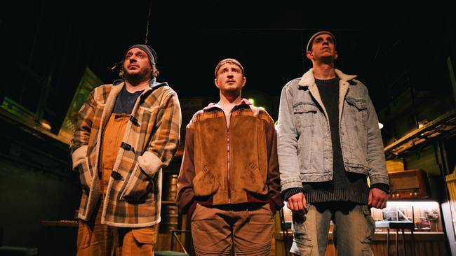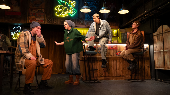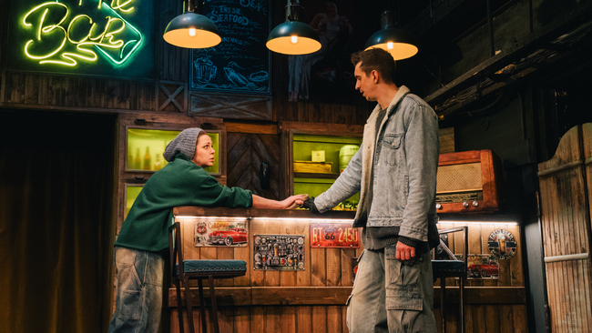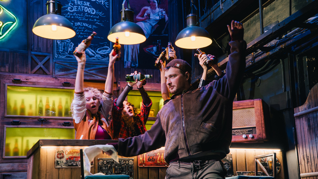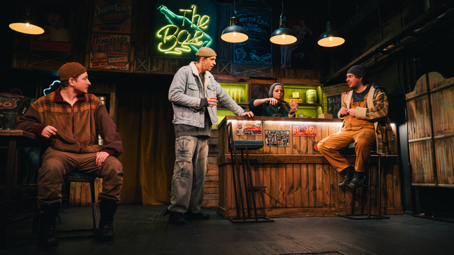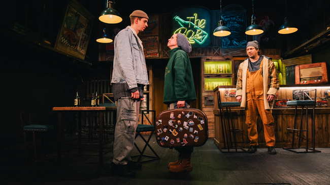 Художник-постановщик Ольга ДАГАЕВА создает не перегруженную деталями, но все же очень достоверную декорацию обычного западного бара (такой тоже может быть где угодно). «Холодно», «Штормит», «Погода – как всегда» – реплики, которые постоянно произносят зашедшие в бар балагур Йорген (Валентин РУДЯК), нервный Густав (Евгений ТРУБКИН), мрачный Тобиас (Вячеслав БОЛДЫРЕВ). Похоже, что они хотят сказать что-то другое, но здесь не принято делиться сокровенным.