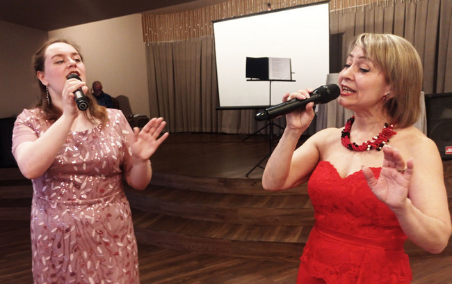 Ведущие мероприятия Юлия НЕЙФЕЛЬД и Галина ИВАНОВА исполнили несколько песен на русском и немецком языках.