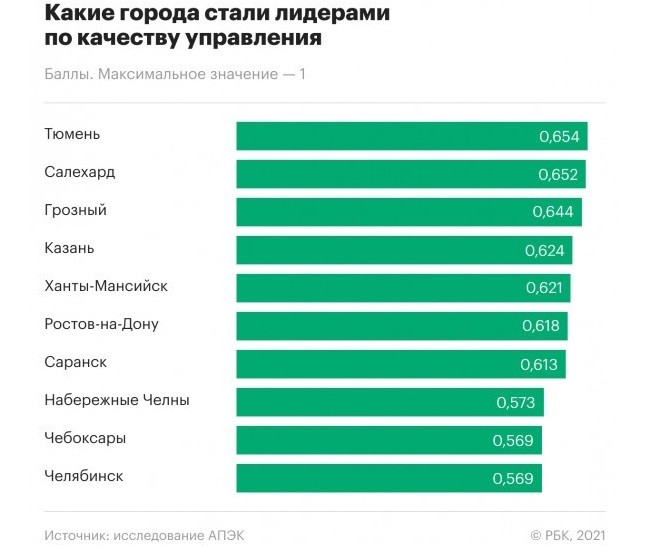 Лидирующую позицию в рейтинге уже четвёртый год сохраняет Тюмень. На втором месте на этот раз оказался поднявшийся на три пункта Салехард, столица Ямало-Ненецкого автономного округа. Улучшил результат и Грозный: столица Чечни оказалась на третьем месте.