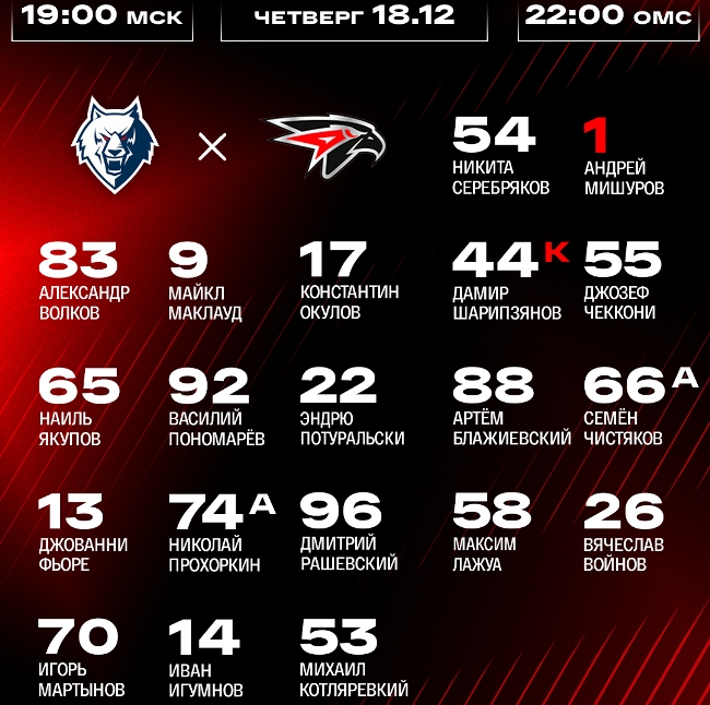 Проиграв аутсайдеру в Новосибирске злые омские «ястребы» полетели в Нижнекамск, где 18 декабря хоккеисты «Нефтехимика» (36 игр, 37 очков, пятое место на «Востоке») проиграли «Авангарду» (33 игры, 45 очков, третье место) со счётом 0:3 (0:3, 0:0, 0:0).