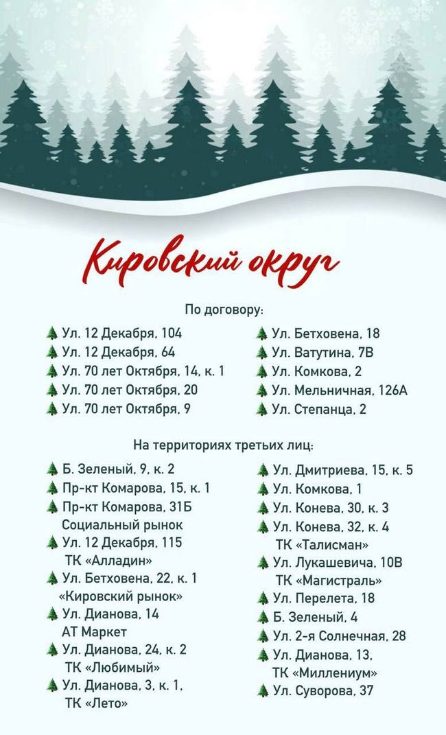 Адреса новогодних базаров – по договору с администрациями округов: