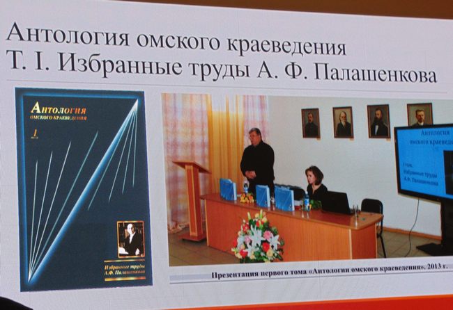 Первый том серии «Антология омского краеведения» вышел в 2013 году. Издание было подготовлено в рамках мероприятий по празднованию 125-летия со дня рождения Андрея Федоровича Палашенкова, известного омского краеведа. В книгу вошли исследования о биографии и творчестве Палашенкова, его собственные работы (о памятниках культуры и истории Сибири, основании Омска и освоении Сибири, путевые очерки и др.), а также ранее неопубликованные документы из Омского областного архива и архива музея. Издание получило положительные отклики в историческом сообществе. Коллектив историко-краеведческого музея продолжил работу над следующими томами «Антологии».