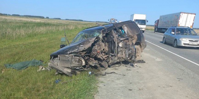 Следственно-оперативная группа полиции осмотрела место дорожно-транспортного происшествия на 915-м километре трассы Челябинск – Новосибирск, где 11 июля в 16:05 произошло столкновение грузовика и кроссовера (на фото).