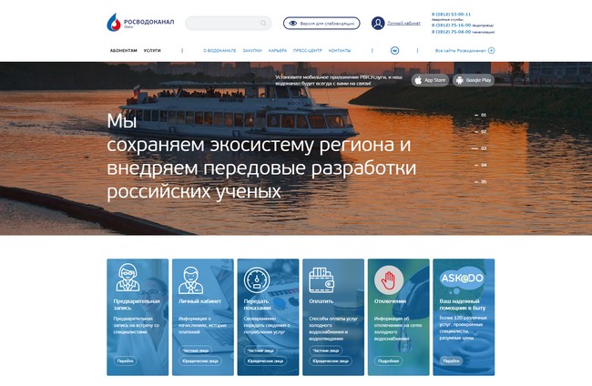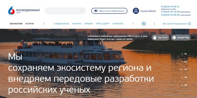 У нового сайта удобный интерфейс, современный дизайн, простая структура и понятная навигация. Для клиентов ресурсоснабжающей организации на главной странице обеспечен быстрый доступ к ключевым запросам. Потребители «Росводоканал Омск» могут передать показания приборов учёта, оформить заявки на подключение к системам водоснабжения и водоотведения, получить дополнительные услуги или направить своё обращение. На сайте «Росводоканал Омск» размещены все необходимые сведения о предприятии, контактная информация, образцы и формы документов.
