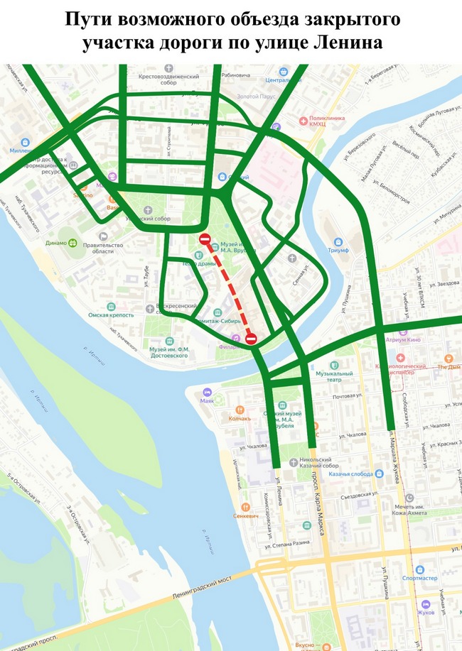 Для автомобилистов мэрия опубликовала схему объезда перекрытого участка.