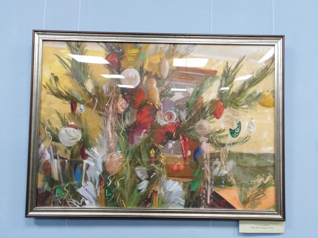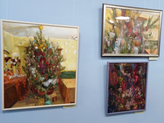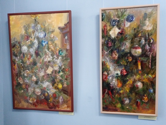 По словам художницы, у елки, как у любого дерева, есть внутренняя архитектоника, скелет, а новогодняя елка – это еще «необъятная груда сложноорганизованных разнотональных масс». Все это создает сложности в изображении. Ну а зрителям остается полюбоваться результатом и зарядиться праздничным настроением.