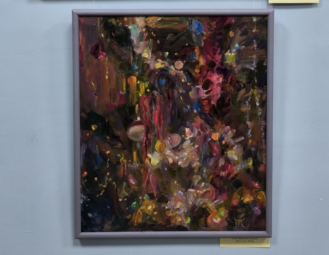 В галерее магазина «Мир увлечений» работает камерная, уютная выставка «С новым счастьем!». Ее автор – преподаватель ОмГПУ, разработчик проекта и куратор Всероссийской молодежной выставки «Искусство завтрашнего дня» Диана САМОЙЛОВА. Экспозиция состоит всего из шести произведений, они написаны в период с 2021 по 2025 год, и в центре каждого – новогодняя елка.