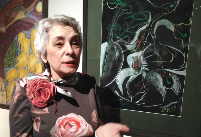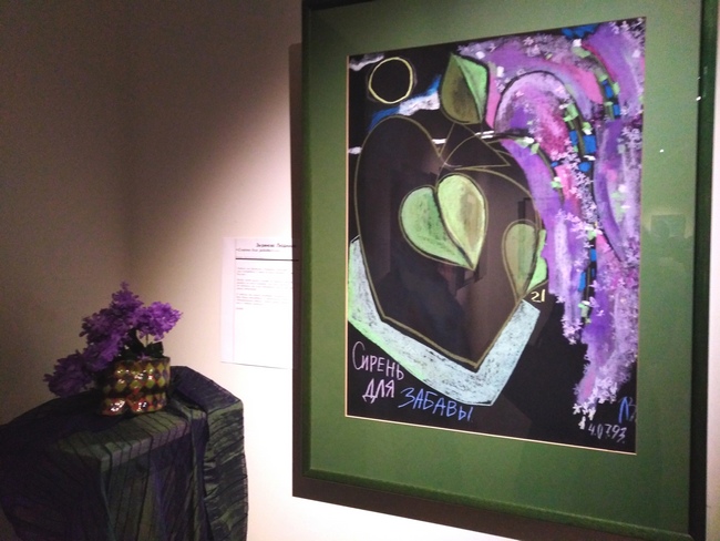 «Зверь в ананасах» – неожиданная ассоциация, возникшая у ее ученика. «Танго подбитого танка» – попытка воплотить головокружительный сюрреалистический сюжет одноименного стихотворения Василия ГАРКУШИ. «Сирень для забавы» – воспоминание о дружбе с Алексеем Николаевичем ЛИБЕРОВЫМ в формате «дедушка – внучка», о том, как оба любили рисовать сирень: