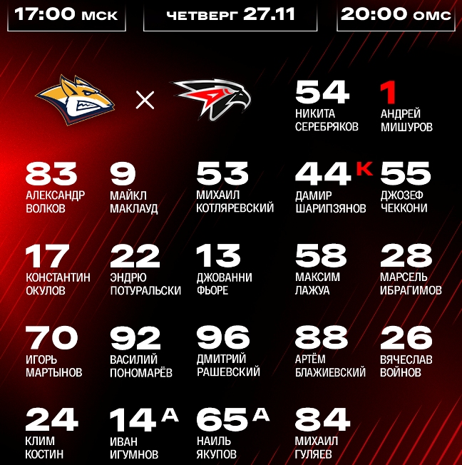 Обидно проиграв на последней секунде в Нижнекамске омские «ястребы» прилетели в Магнитогорск. 27 ноября лидер чемпионата «Металлург» (30 игр, 48 очков, 1-е место на «Востоке» и КХЛ) уступил «Авангарду» (29 игр, 39 очков, 3-е и 7-е место) со счётом 1:3 (0:2, 1:0, 0:1).