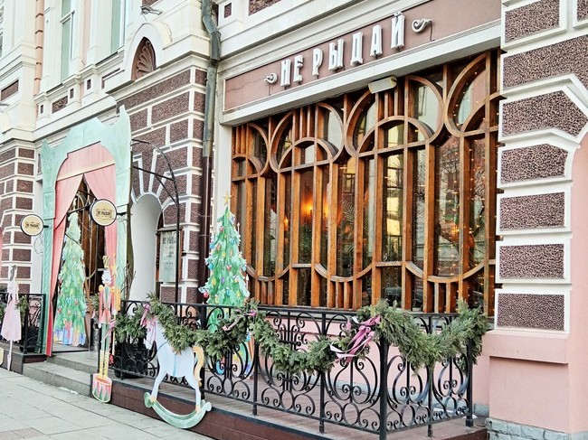 В каждом городе есть кафе-«визитница». Как правило, обычное, но с названием-завлекалкой. Здесь было «Не рыдай». Ладно, заглянула. Не-е-е, заведение очень значимое – вкусное, недорогое и с ретро-интерьером, причем, в сочетании советского и старинного. Стойка раздачи, как в столовой, а залы – как в особняке прошлого века с картинами, зеркалами, роялем. И работницы в платьях с воротничками и манжетами – то ли гувернантки, то ли гимназистки. Да еще с реальной историей: в 1923 году в этих стенах был открыт ресторан-кабаре «Не рыдай» – чтобы отвлечь людей от Гражданской войны, чтобы меньше плакали. Какой креатив! Здесь вкушали Амундсен и Хо Ши Мин. И меня потянуло снова.