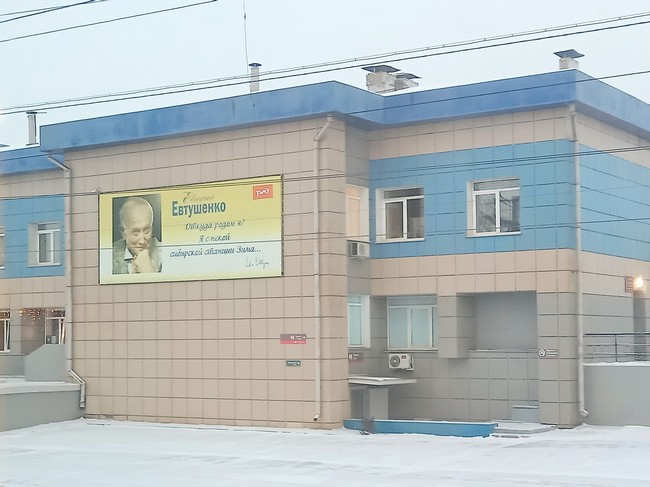 Первое же «кино» из поезда оказалось авторским. Портрет Евгения Евтушенко на стене одного вокзала напомнил о снятом поэтом в 1980-е годы фильма о своем военном детстве. Сюжет в общих чертах: мальчик в одиночку во время Великой Отечественной войны добирался до сибирской станции, где его ждала бабушка. Забыла название фильма (позже уточнила – «Детский сад»), но точно помнила название станции – Зима. К ней мы и подъехали. Здесь поэт родился, ее воспел в стихах и кино. Соприкосновение с ушедшим талантом… Взгрустнулось.