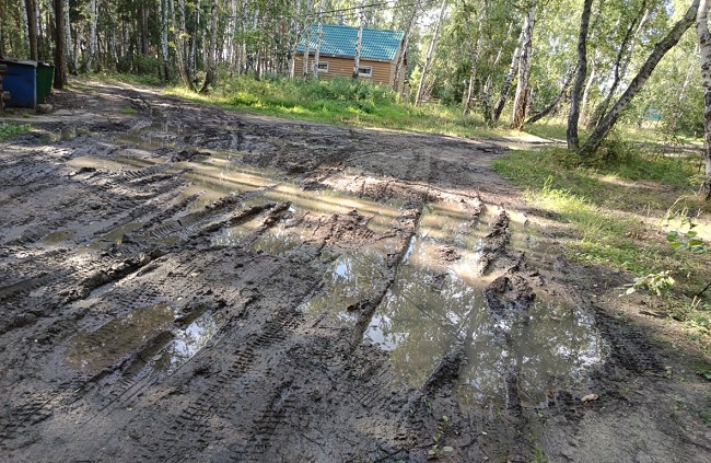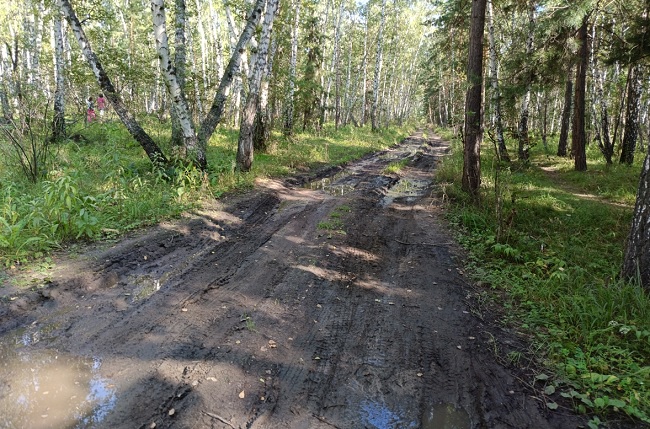 Так вот на фоне этой доступности, как минимум, треть лесной тропы оказалась теперь самым варварским образом разбитой, обзаведясь колеями и непроходимой грязью.
