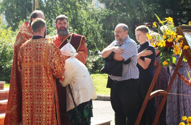 Митрополит Омский и Иртышский с крыльца Ильинской часовни обратился к верующим со словами: