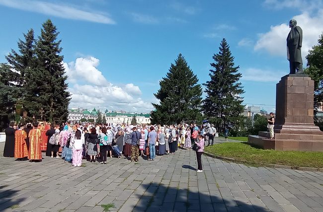 В начале Ильинской горки вблизи памятника Ленину колона остановилась. Здесь были прочитаны молитвы.
