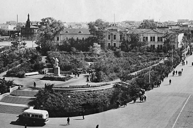 На этом месте стояла Ильинская церковь, которая была снесена в 1935 году.