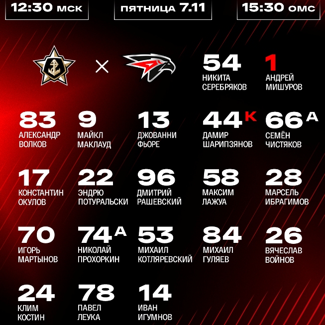 Проиграв в Хабаровске омские «ястребы» полетели во Владивосток, где 7 ноября хоккеисты «Адмирала» (16 очков, последнее 11-е место на «Востоке», 20-е место в КХЛ) одолели «Авангард» (30 очков, 3-е место, 8-е место) в овертайме со счётом 2:1 (1:0, 0:1, 0:0, 1:0). Напомним, сегодня омскому профессиональному хоккейному клубу «Авангард» исполнилось 75 лет.