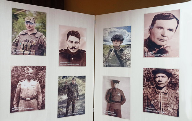 На стендах выставки размещены выдержки из статей и очерков авторов, в которых они указали боевые пути их прадедов во время Великой Отечественной войны и также родственников участников в локальных войнах и специальной военной операции в ДНР и ЛНР.