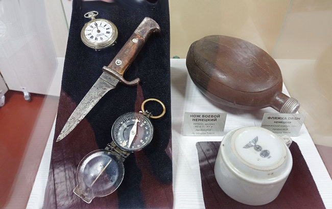 На выставке представлены предметы: оружие, документы, фотографии событий Великой Отечественной войны и специальной военной операции в ДНР и ЛНР.