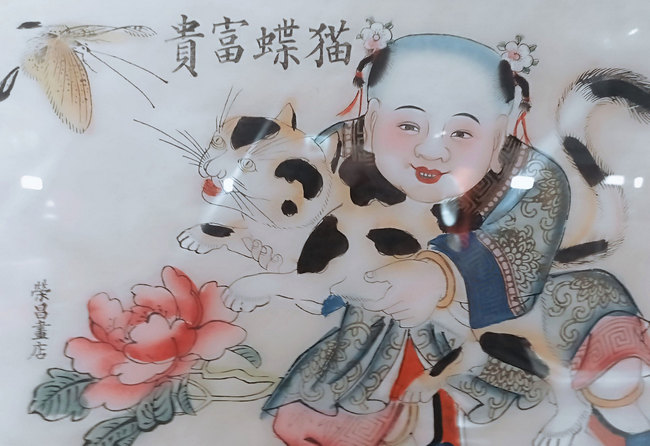 Подобные картины предназначались для бедных слоев населения, поэтому, хоть на них есть надписи, те, кто не умел читать, могли понять содержание по набору символов. Например, на одной из картин изображен мальчик, обнимающий кота, который в свою очередь ловит большую бабочку. Это пожелание долголетия, богатства и знатности, поскольку кот и бабочка соответствуют цифрам 80 и 90 (лет), а пион рядом символизирует богатство и знатность.
