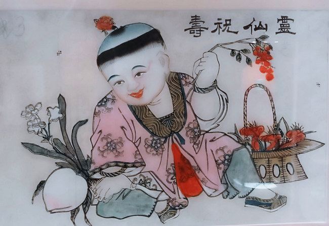 На другой картине нарядный мальчик также окружен несколькими символами долголетия: слева от него персик, справа – корзинка с грибами линчжи. Рядом с персиком расположен нарцисс, называемый в Китае водяным небожителем, а в левой руке мальчик держит веточку нандины – кустарника с красными ягодами. В слове «нандина» есть слог от «поздравлять» или «желать». Изображение расшифровывается следующим образом: «Небожитель желает вам долголетия». Вообще в китайской символике многое построено на омофонах.