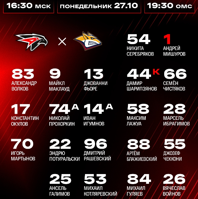 Хорошо отдохнув четыре дня после проигрыша «Северстали» на «G-Drive Арене» 27 октября хоккеисты «Авангарда» (25 очков, 3-е место на «Востоке», 7-е место в КХЛ) проиграли «Металлургу» (30 очков, 1-е место) со счётом 1:4 (0:1, 1:3, 0:0).